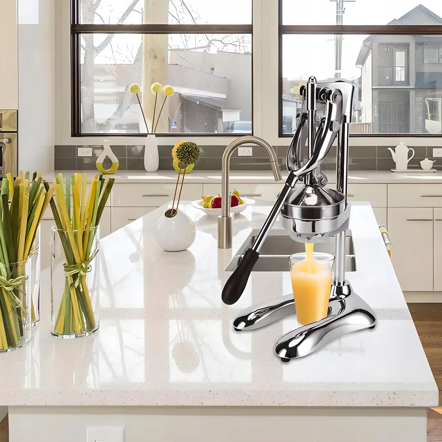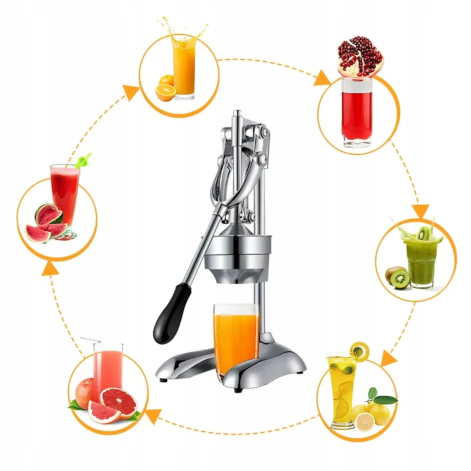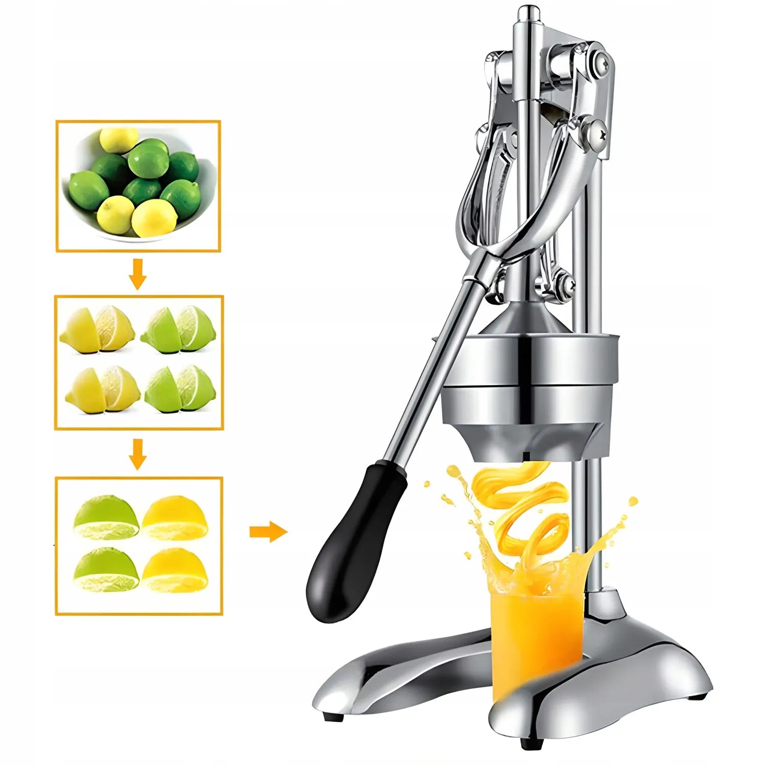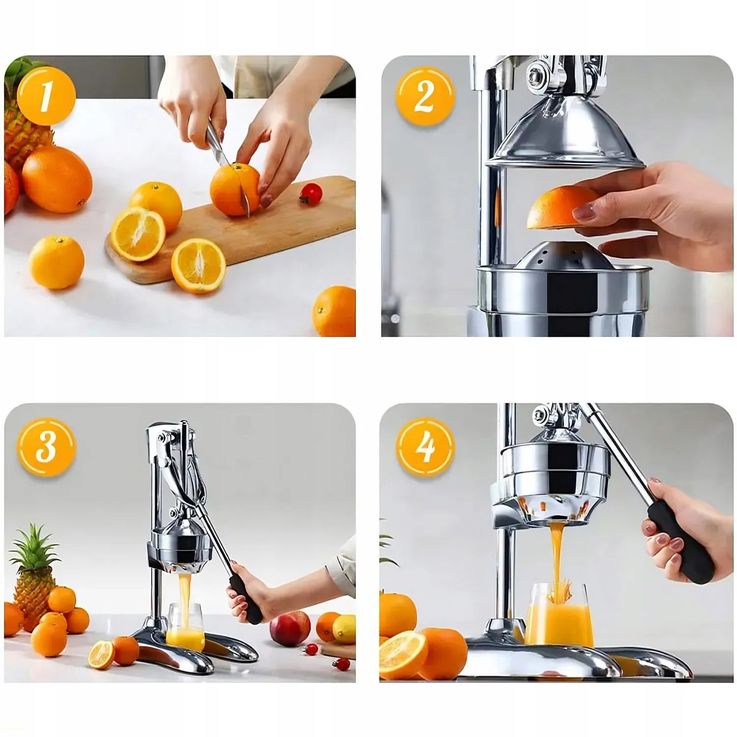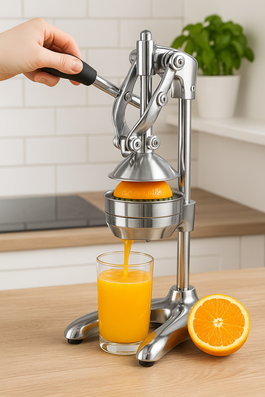Wystarczy lekki nacisk — dźwignia przenosi siłę tak, że nawet twarde owoce wyciskasz bez wysiłku. To rozwiązanie stworzone z myślą o codziennym komforcie.